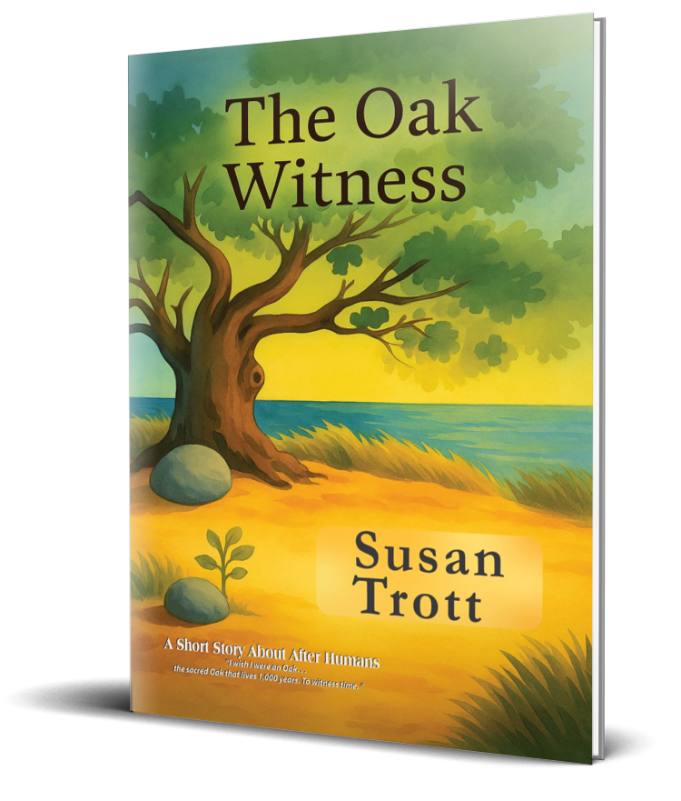 The Oak Witness is a lyrical, illustrated meditation on memory, loss, and renewal, told through the voice of Lunarieth, an ancient oak who has stood watch for centuries. From her rooted place in the soil, she remembers humanity — its hopes, its failures, and its quiet disappearance — and carries those stories forward through leaf, wind, and time.